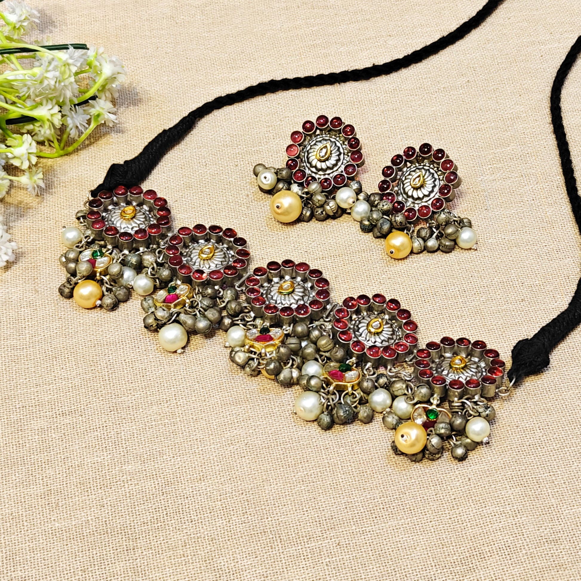 Tehzeeb Silver Plated Choker Set for Women - Wedding Jewellery